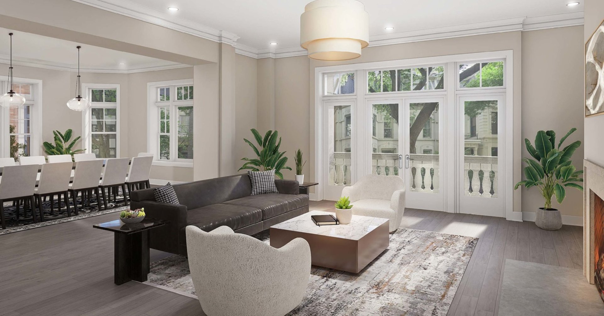 This intimate Gold Coast building offers just eight full floor residences, with only two remaining, creating a level of privacy that feels deliberate. Each home is accessed by private elevator and designed with real volume, 10 foot ceilings, generous terraces and floor plans that allow for true entertaining and separation of space. Finishes are timeless rather than trend driven, wide plank oak, custom cabinetry, Wolf and Sub Zero, layered stone, all grounded in solid masonry construction with radiant heat and concrete separation for quiet. A landscaped courtyard, dedicated wellness room and attached heated garage parking round out the experience. It is substantial, discreet and exactly what new construction in the Gold Coast should be.
